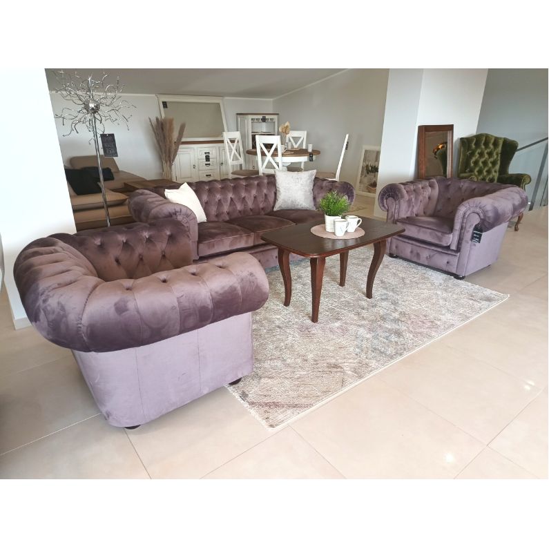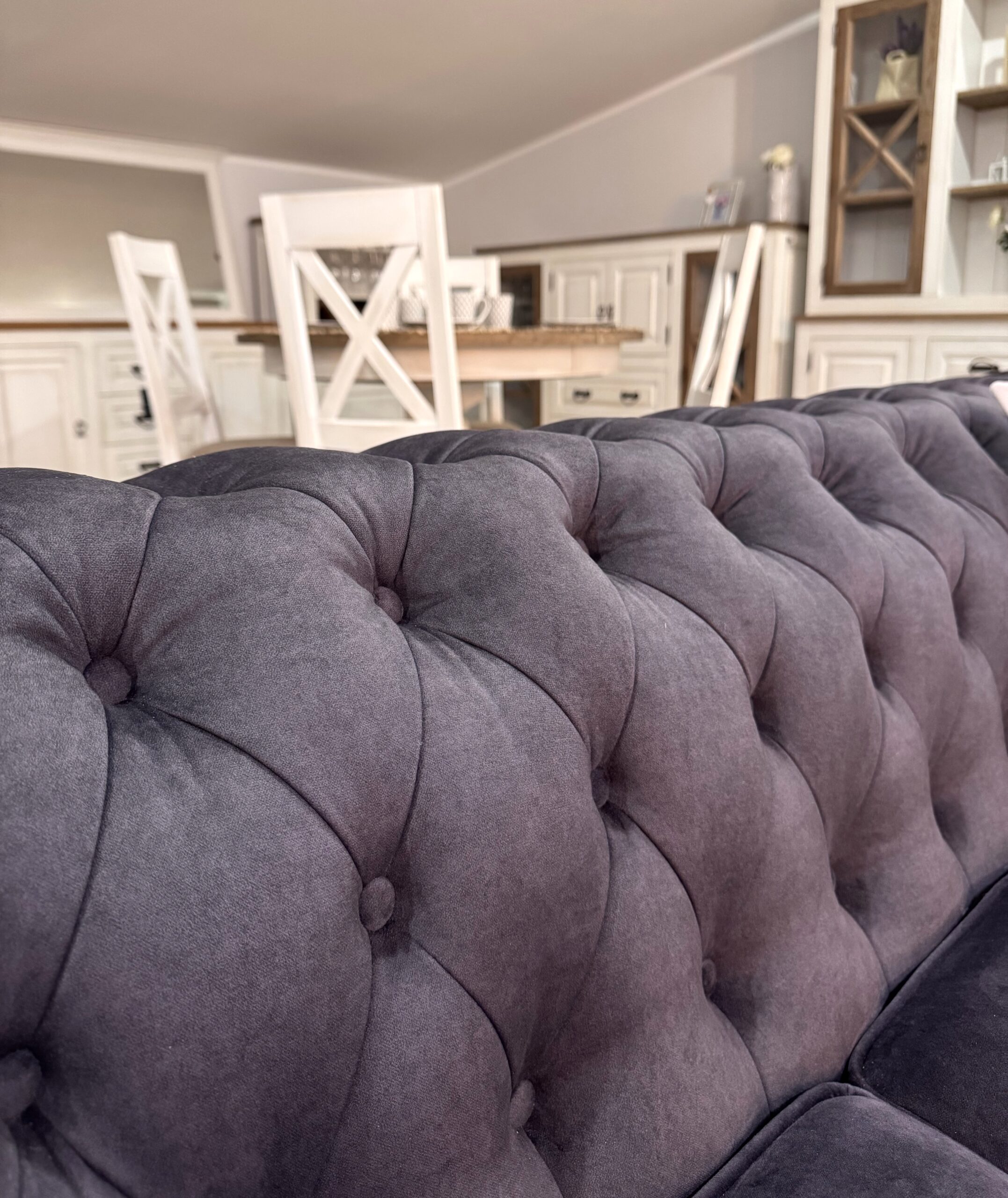 Chesterfield pikowany komplet wypoczynkowy w tkaninie łatwoczyszczącej