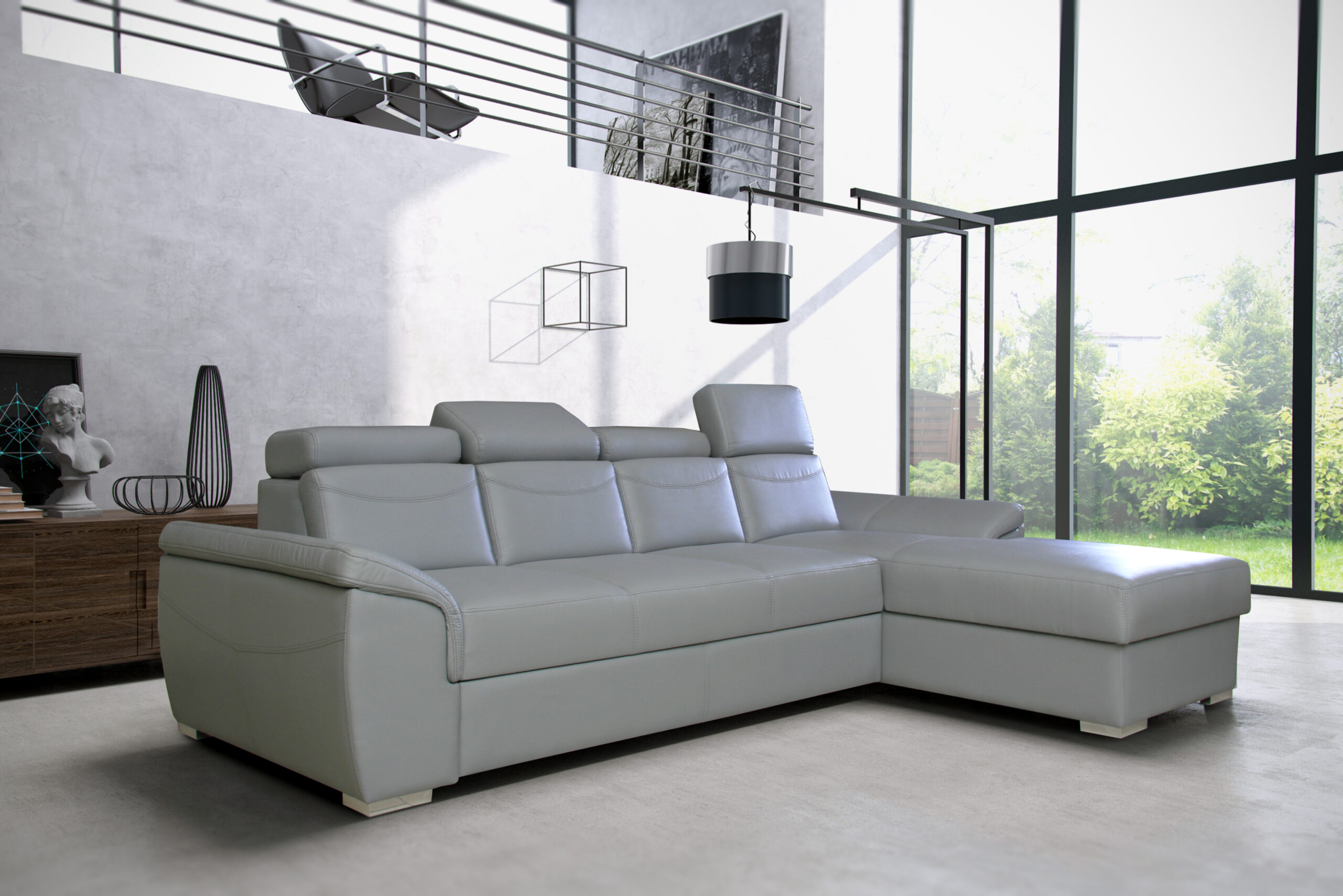 Prosta linie narożnika Cayenne wzbogacają podłokietniki oraz regulowane zagłówki. Narożnik posiada szezlong uwielbiany przez wielu klientów. Jego prosty kształt idealnie wpasuje się do wnętrz tworzonych z pasją.